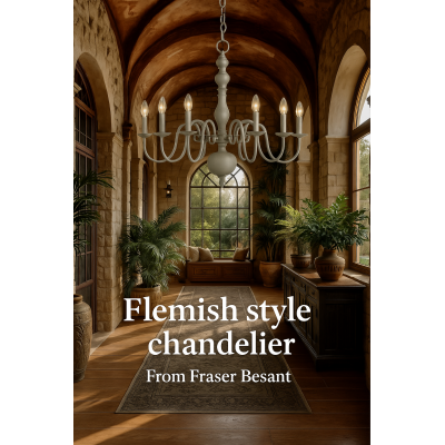 Impex Russell soft grey flemish 8arm chandelier from the Bologna range. An unusual colour to find this style of light fitting in, would suit a more modern roomset aswell as shabby chic. Please allow up to 10 working days for delivery.