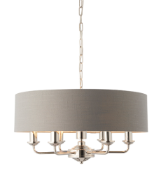 Highclere 8lt Pendant - Vintage Brass & Natural Linen