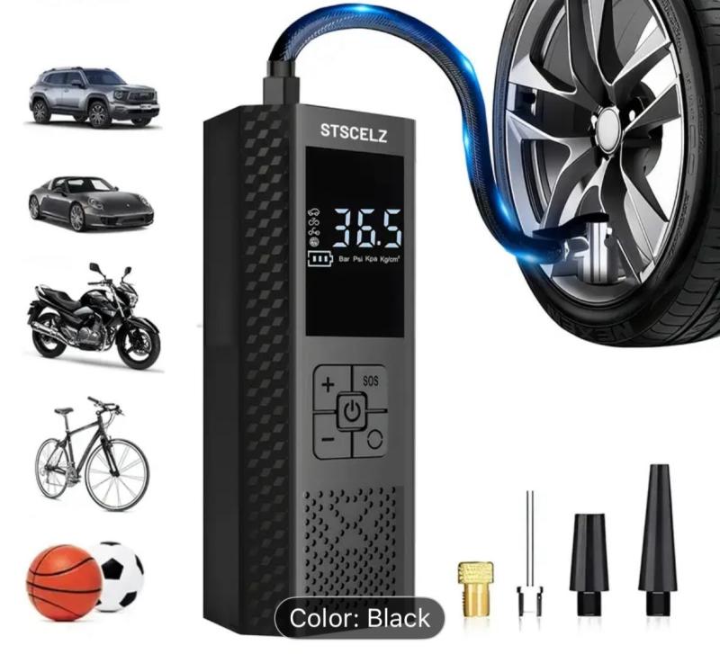 Multi-Purpose Use: Comes with multiple nozzle attachments for inflating car tyres, bicycle tyres, motorcycles, sports balls, and inflatable toys.