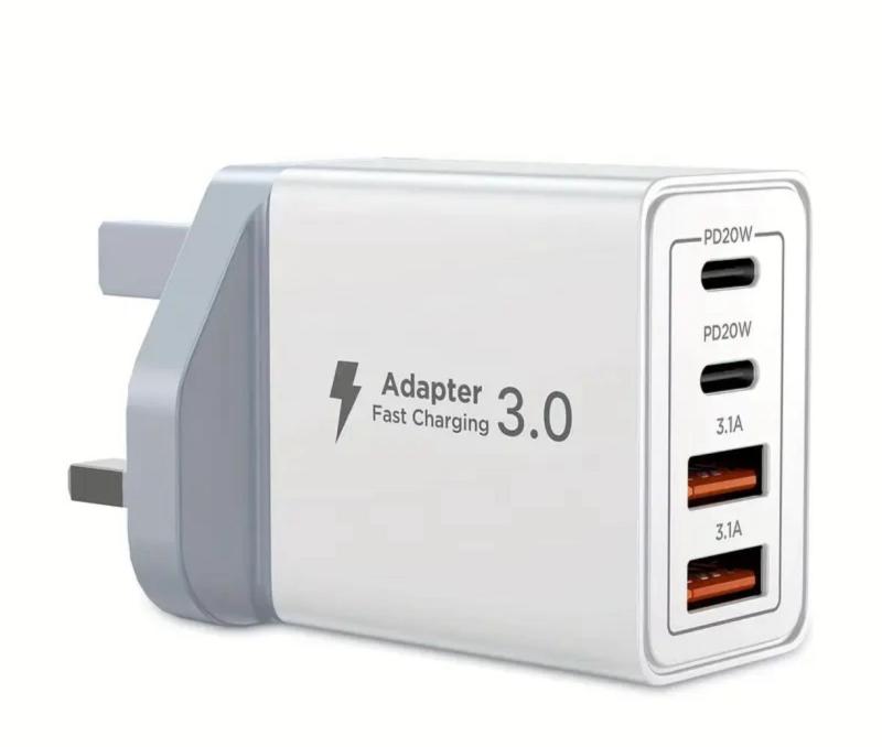 Dual-Port Charging: Equipped with two USB-C port and two USB-A port, allowing you to charge two devices simultaneously.