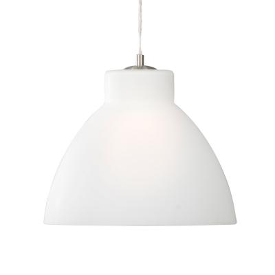 The domed white glass shade creates a soft lighting effect, with a discreet satin silver finish top and suspension ceiling fitting to complete the traditional look.