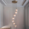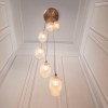 Antique brass and clear ribbed glass 7 light cascade pendant