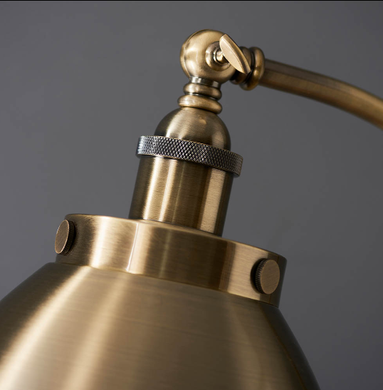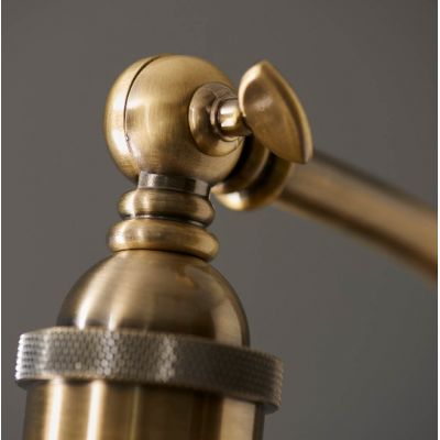 An authentic 'resto' style adjustable floor light, finished in antique brass & antique brass plated details. Featuring an adjustable head with easy reach on/off push switch and 2m black fabric flex, pair this floor light with filament LED lamps for that perfect industrial style. The perfect addition for today's stylish homes to create that on trend bar, bistro look. Modern industrial style Antique brass plated rolled edge metal shade and top stem Matt black painted base and bottom stem Adjustable head Easy reach on/off push switch 2 metre black fabric flex Twin with E27 LED filament lamps to complete the look
