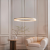 Brushed gold & opal ribbed hoop LED pendant 3200lm