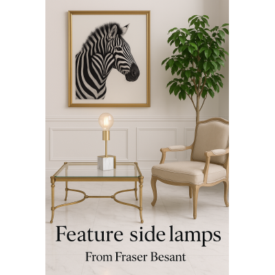 The CARMITA table lamp has a stone base and brushed brass metal frame, it's minimalist, modern design suits any modern, contemporary decor. Dimensions Height: 260 mm Ø: 45 mm Base Width: 80 mm Length: 80 mm