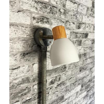 Industrial coastal GU10 conduit spotlight fully adjustable Ideal as a reading light. Takes 1 x GU10 LED lamp. Gorgeous metal cowl shaped shade complimented with a Scandi wooden back. This is a coastal design coupled with an industrial vibe. Conduit lighting is very urban and works well as a feature.