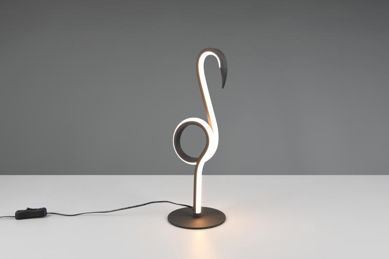 The FLAMINGO table lamp brings playful elegance into your home. The lamp is designed in the shape of a flamingo, with the flamingo body serving as the luminous centrepiece. This unusual design makes FLAMINGO a real eye-catcher that will turn heads in any living area. Whether as a highlight on a chest of drawers or as an original accessory in a teenager's room - this light sets stylish accents. The practical cord switch makes it easy to switch on and off. With the FLAMINGO table lamp in matt black, you can bring a touch of tropical flair and creative design into your home. The luminaire also features modern LED technology, which is characterised by high light quality and energy efficiency. Compared to conventional halogen light sources, up to 80% of energy costs can be saved. LED light sources also have a long service life, produce less heat and protect the environment.