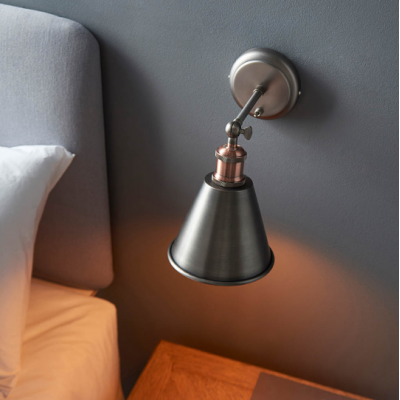 The Hal wall light is finished with an aged pewter and antique copper effect for a timeless, classic, yet on trend look.