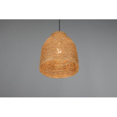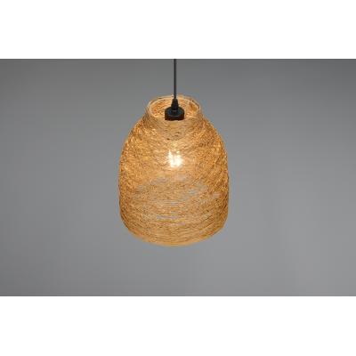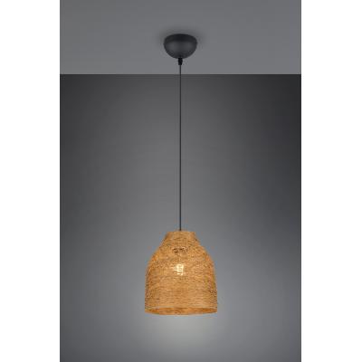 The Lana Pendant Light blends natural texture with minimalist form, featuring a warm brown woven paper-yarn shade suspended from a matte black metal ceiling fixture. This compact yet stylish pendant casts a soft, diffused glow—perfect for creating a cosy atmosphere in kitchens, bedrooms, or living spaces.