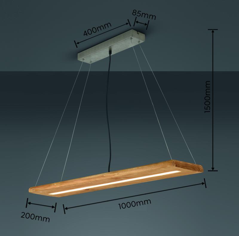 The pendant light is the right choice for a cosy home! The modern light impresses with its combination of real wood and metal, creating a cosy atmosphere. The light cuts a particularly fine figure above the dining table, where it is shown to its best advantage as a central element. The pendant light has a height of 150 cm and a width of 100 cm. With the great combination of wood and metal in antique nickel, the light fits perfectly into modern furnishing concepts and is also a real highlight for vintage fans. In addition, the luminaire features modern LED technology, which is characterised by high light quality and energy efficiency. Compared to conventional halogen lamps, up to 80% of energy costs can be saved. In addition, LED light sources have a long service life, produce less heat and protect the environment.