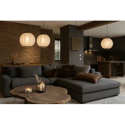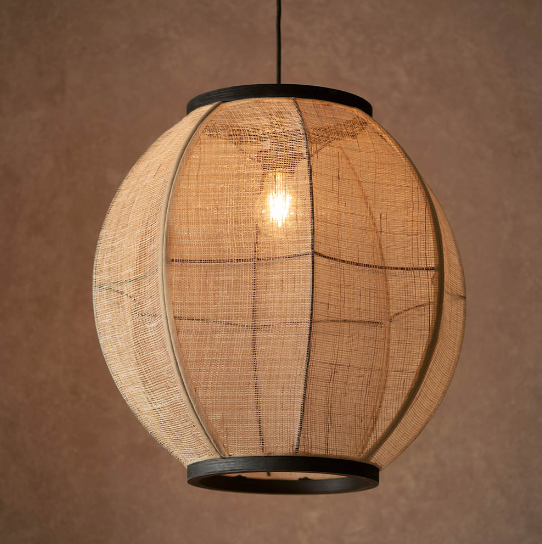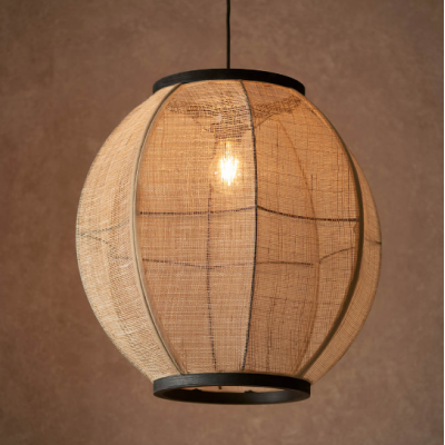 Take your interiors back to nature with this handmade wood and natural linen collection; a large pendant perfect for bringing an organic texture and warming ambience into your home. Other family items available. Handmade natural linen fabric Matt black finished metalwork Adjustable height 1.2 metre black fabric flex Dimmable Twin with our range of filament lamps for that unique 'on trend' look