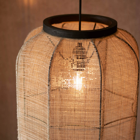 Take your interiors back to nature with this handmade wood and natural linen collection; a medium pendant perfect for bringing an organic texture and warming ambience into your home. Other family items available.