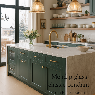 This charming mini-pendant design features authentic details like cast knobs, clear ribbed optic glass and bold strap details. Vintage style bulbs are the ideal companion, reinforcing this pendants versatility and ability to enhance interiors ranging from traditional to industrial to modern farmhouse.