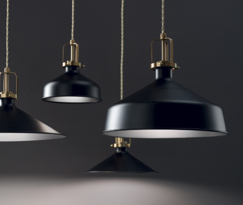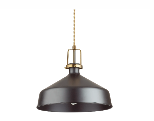 Metal frame with matt black varnished ceiling rose and diffusers. Details with satin gold finish. Braided electrical wire coated with fabric. Ø 330 x H min 520 / max 2150 mm E27 max 1 x 42W