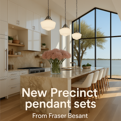 The precinct 1 light pendant with white opal glass and classic satin silver chain can be height adjusted and is convertible to a flush fitting.