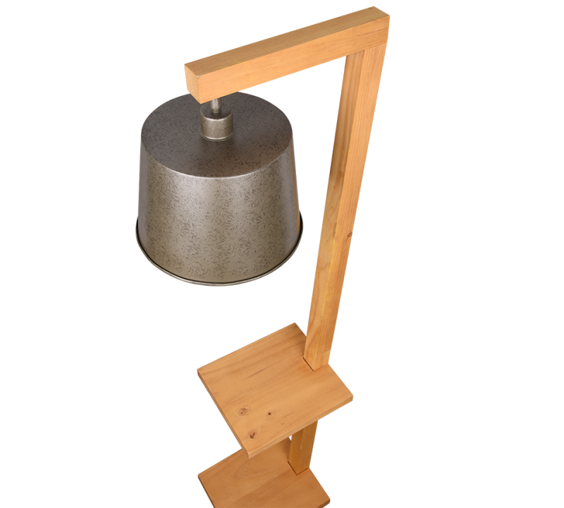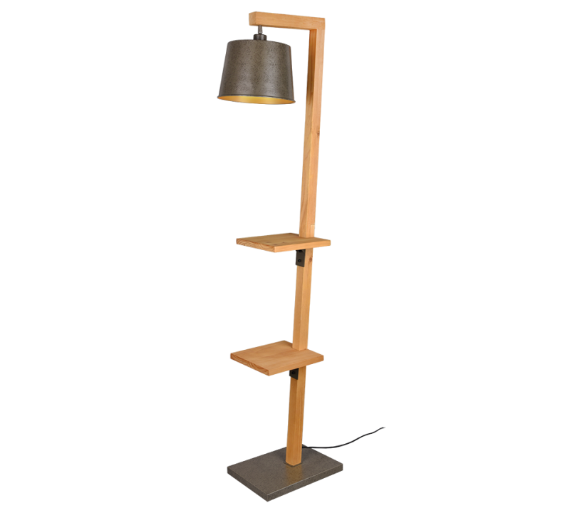 The shade can be swivelled and enables targeted lighting, the solid wooden carcass also offers two shelves for books or decoration.