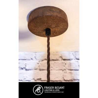 We make this pendant using 1.5mm thick steel so the weight and quality of this shade is second to none. The shade itself is made right here in the UK and the shape and design are uniuqe to us. We supply each pendant set with 1.5 metres of brown twisted fabric cable and a rusted ceiling rose. Each rose is supplied with a metal fixing bracket, earth lug and wago connectors for an easy installation. It comes with a black metal cord grip