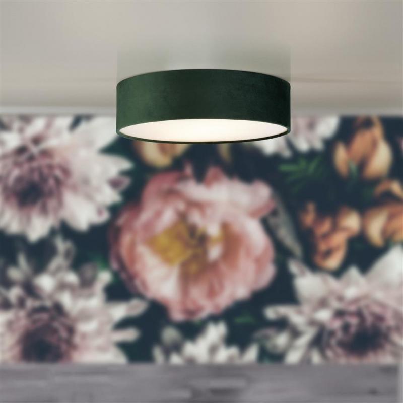 Bring instant elegance to any room with this green velvet flush ceiling light. The deep green colour and luxe texture is complemented by a 3 light opal diffuser which ensure Drum gives a warm glow.