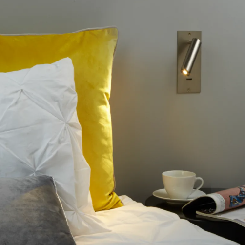 Victoria LED is part of the Victoria family of wall lights. The contemporary tubular reading light features a replaceable LED module with CREE 3000k light source, and a linear switch. Victoria LED is surface mounted, and hence ideal for hotel bedroom refurbishments. Victoria LED Recessed offers a headboard solution.