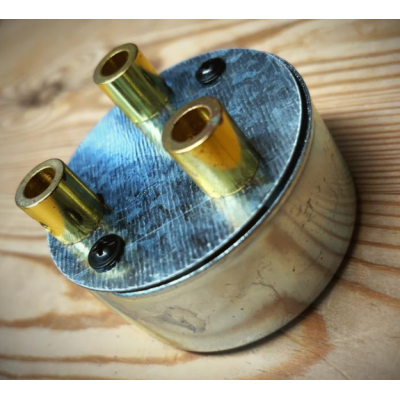 Handmade 3 way conduit rose with brass cord grips.