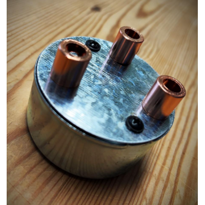 Handmade 3 way conduit rose with copper cord grips.