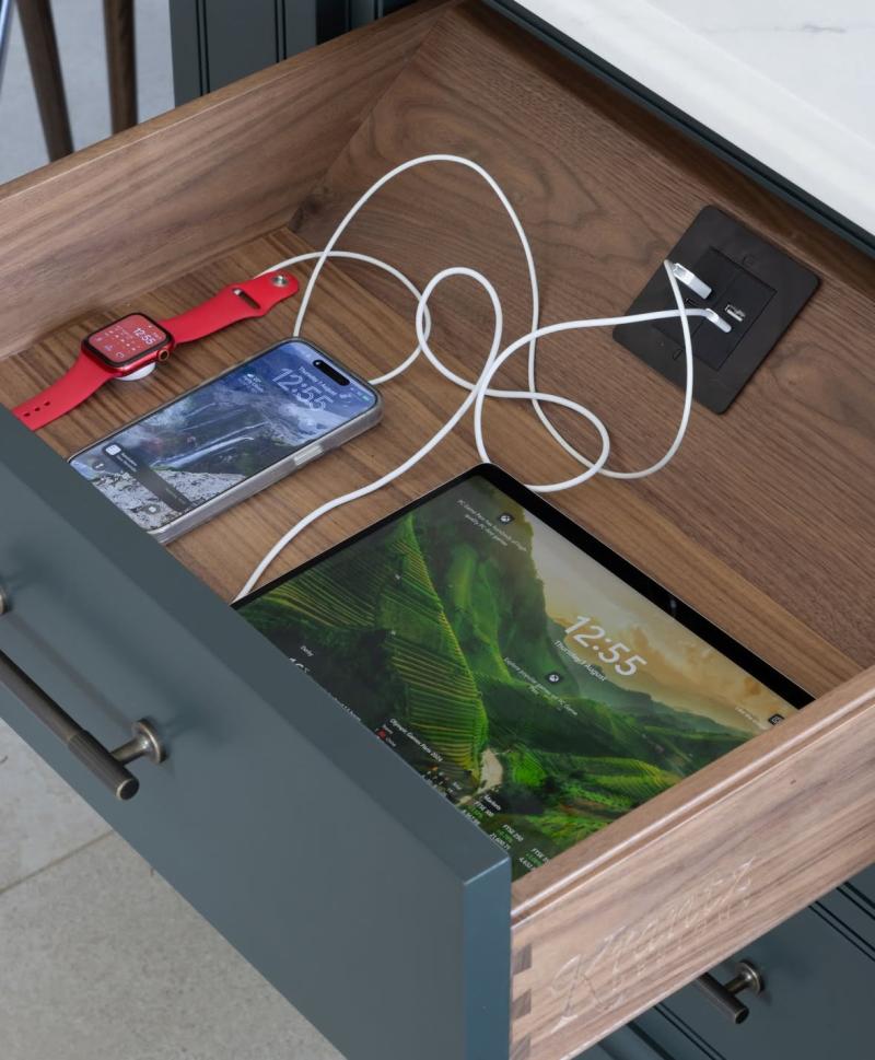 USB phone & tablet charger in Matt Black finish. This modern twin USB (A+C) outlet sits on a single (1gang) plate. It is a neat and affordable solution when looking to introduce a USB phone/tablet charger to a kitchen island or a bedroom.