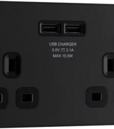BG Evolve 2gang Matt Black Screwless Switched Socket with USB