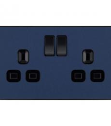 Matt Blue Evolve 2 Gang 13A Switched Socket Outlet - Black Insert