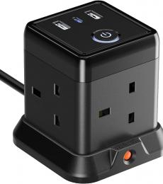 Cube Extension Lead 4 Power Socket + 3 USB Ports