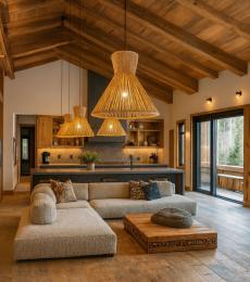 Aeris Pendant Light – Black Metal & Natural Woven Shade
