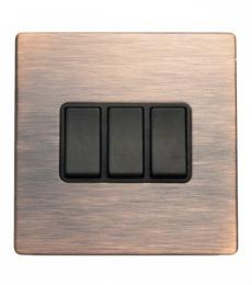 Hamilton Sheer CFX Copper Bronze 3 Gang 2 Way Light Switch