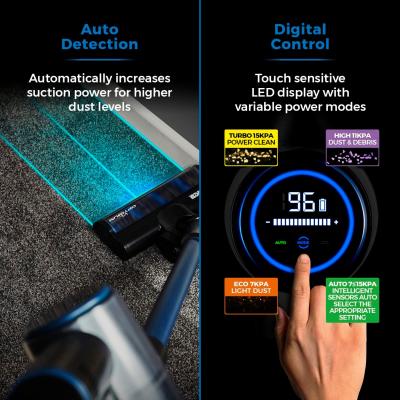 - DIGITAL CONTROL & AUTO DETECT FUNCTION: Touch sensitive LED display with 4 power modes, including auto suction mode. Dust sensor technology continuously detects dust particles, automatically increasing suction power for higher dust levels with the LED display showing up hidden dust and debris