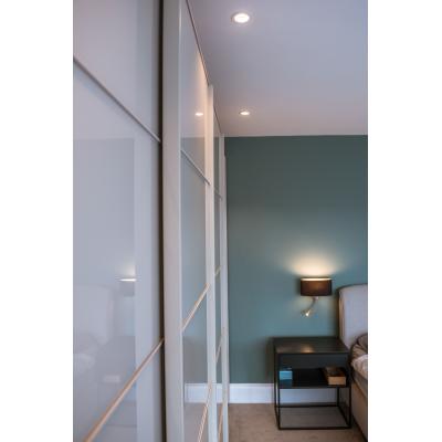 This recessed model holds the lamp higher in the ceiling, resulting in a designer look with lower glare. Baffeled downlights are ideal when you want to create a tighter beam of light as the LED sits further back in the unit it creates a sword of light rather than a wider spread.