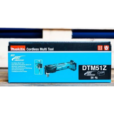The Makita DTM51 cordless multi-tool features tool-less accessory change system for quick installation and replacement of accessories and soft start and anti-restart function.