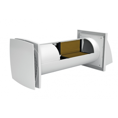 - Extracts damp air, supplies fresh pre-warmed air; 45 m³/h airflow.