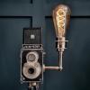 This style of the lamp, amber glass with spiral filaments, looks great on its own or paired up with an exposed shade.