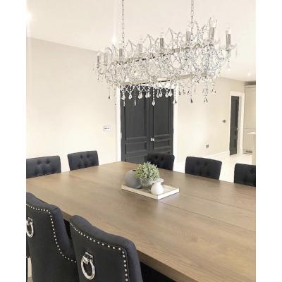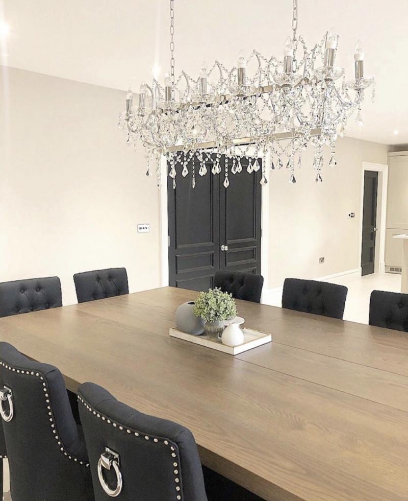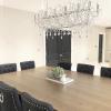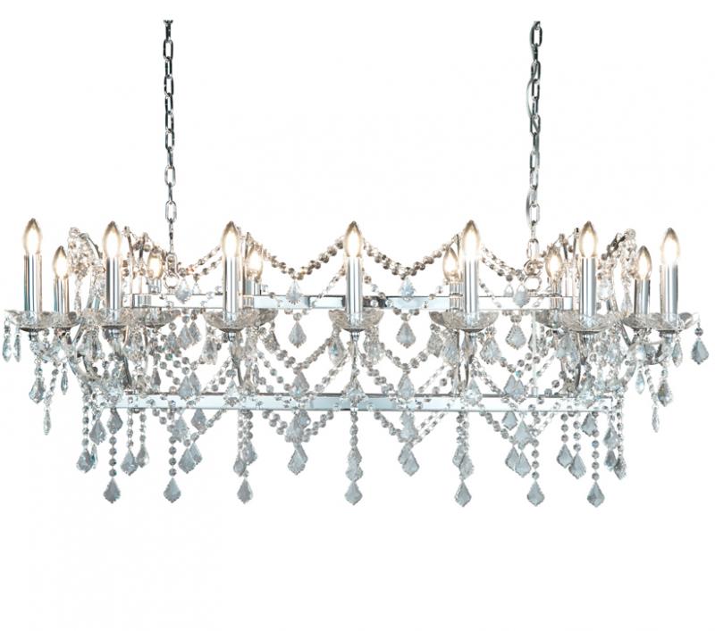 Make a statement using this 14 light chrome pendant bar with stunning clear crystal adornments. The 14 lights are adjacent to each other and the visible bulbs create an illuminating glow; great for adding brightness to your living room, hallways or dining room. Impressive clear crystal detailing is formulated in a pattern with the larger crystal suspending below.