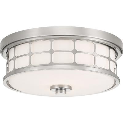 2 Light Flush Mount IP44 Ceiling Fitting in Brushed Nickel