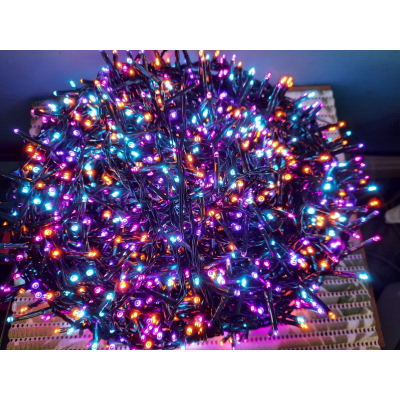 A versatile 2000 LED Rainbow (Multi-coloured) light set professionally lights your tree in minutes and provides a combination of light displays. There are 4 times as many lights per metre as regular lights and ideal for use on 10ft indoor or outdoor tree.