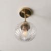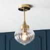 Addington Antique Brass Semi Flush Light fitting with Clear Ribbed Glass