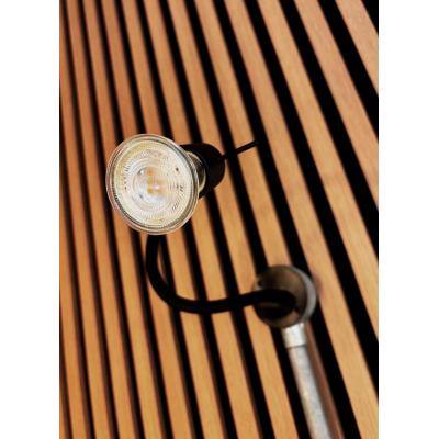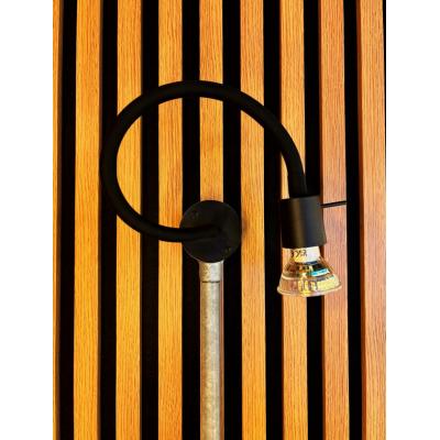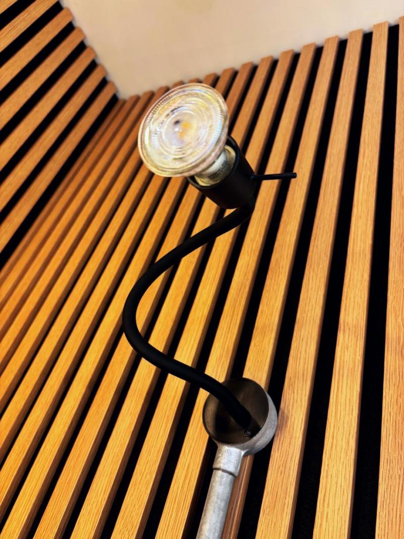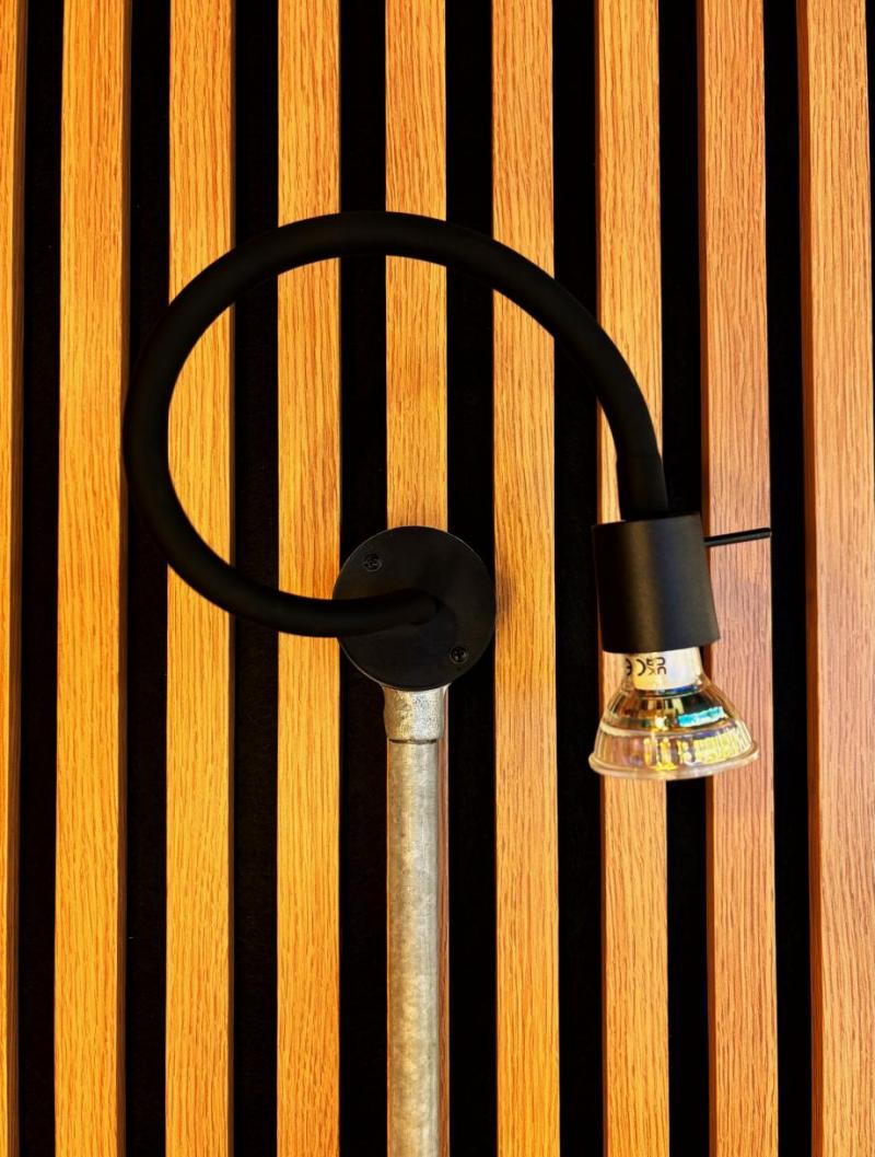 Adjustable reading wall light fitted to a conduit box GU10. A simple adjustable/bendy arm black wall spotlight fitted to an industrial conduit end box. This secured to a surface conduit pipe, sold in short 1000mm lengths on this site. A great way to quickly add a bedroom reading light to a space. Industrial design and a very lovely design. The lamp takes a GU10 led and we would always recommend warm white for a bedroom. The bendy arm has a thin rubber cover over the metal so again it’s black and looks very stylish. This lamp is made up in my Bristol workshop by hand and is on display now in the lighting showroom. It’s a gorgeous new addition to my popular conduit lighting range. The LED GU10 is sold separately.