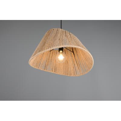 Natural woven fibre shade with matte black metal ceiling mount