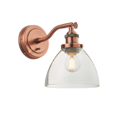 An authentic 'resto' style adjustable wall light, finished in aged copper plating with authentic knurled lamp holder details and clear glass shades. Featuring an adjustable knuckle and accessible on/off switch, pair this wall light with filament LED lamps for that perfect industrial style. The perfect addition for today's stylish homes to create that on trend bar, bistro look.