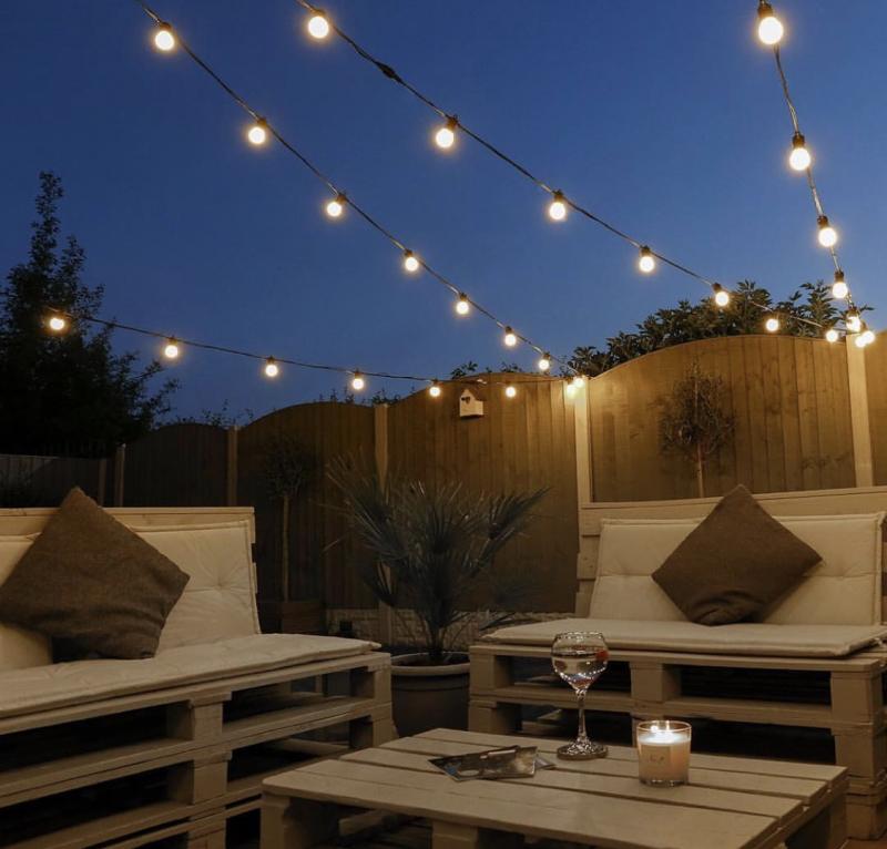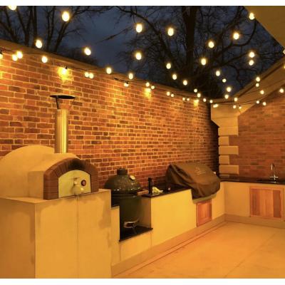 Custom made exterior festoon lighting kits. Festoon lighting kit IP44 black rubber cable UV rated so it won’t degrade in the sunlight. We can supply this kit with up to 100 x E27 outdoor rated lampholders and 50 metres of cable. All you have to do is email/call us with the exact run and the number of holders you want to use and we will send you a quote. Please allow 5-7 days for a bespoke order. The festoon kit is supplied less lamp but we have loads of options for lamps inc a huge range of LED decorative filament lamps. Again we discuss this with you in more detail if you want to call us. We make these sets up and fully test each one in our Bristol workshop. Please call 01179425355 or email sales@ablectrics.com to get a no obligation quote now. These lights are a great way to light a roof terrace, dining area, bar, decking or a tree. We have displays of them in our Bristol showroom. If you are looking to dim your new festoon we also make a a great range of IP rated garden dinners than can find up to 30 LED lamps.