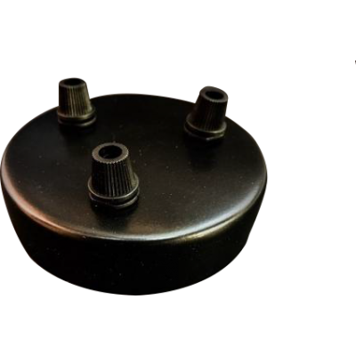 A beautiful hand finished satin black metal 3 way decorative ceiling rose. We make this ceiling rose using 1.5mm thick steel so the weight and quality of this component is second to none. These ceiling roses are 100mm wide. Each rose is supplied with a metal fixing bracket, earth lug and wago connectors for an easy installation. We supply this ceiling rose with black plastic cord grips or you can buy it with polished brass, polished copper or polished nickel metal decorative cord grips. Please choose from the drop menu. We also make a great range of vintage inspired fabric cable which is ideal for making your own pendant lighting.
