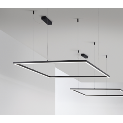 The Pendant is a contemporary LED pendant, designed to combine minimalist aesthetics with high functionality. This model features a sleek, square black aluminium frame with a matte finish, complemented by an opal polycarbonate diffuser that ensures uniform light distribution. Key Specifications: Dimensions: 900 mm (W) x 900 mm (L) x 2.5 mm (H), with adjustable suspension height ranging from 90 mm to 2050 mm. Light Source: Integrated 53W LED module. Luminous Output: Approximately 3300 lumens. Colour Temperature: 3000K (warm white). Average Lifespan: 17,500 hours. Energy Efficiency Class: E. IP Rating: IP20, suitable for indoor use only. Weight: 2 kg. This pendant light is ideal for illuminating modern interiors such as living rooms, dining areas, offices, or hospitality spaces. Its clean lines and neutral colour palette allow it to seamlessly integrate into various design schemes.