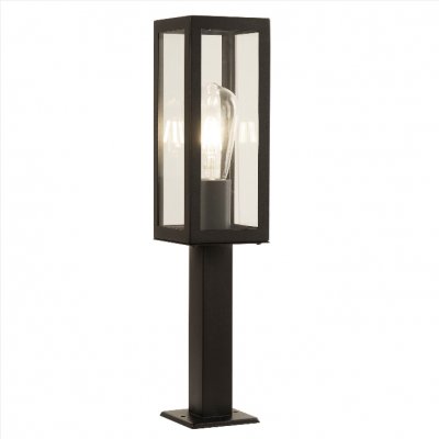 Black Outdoor 1 Light Rectanglur Headed 450mm Bollard with Glass Panels