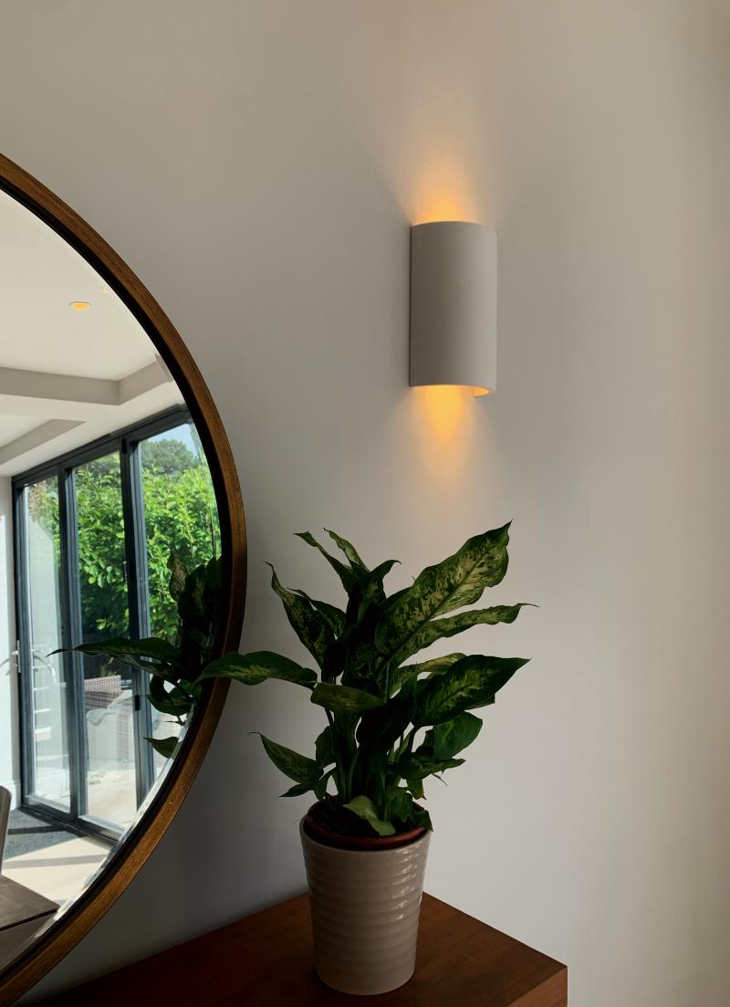 Chelsea Plaster Up Down modern minimalist wall light ideal for a lounge, dining room or corridor. A simple curved design projects a sword of light up and down the wall. These wall lights are perfect for modern and minimalist interior designs. We have this light fitting on display now in our showroom.