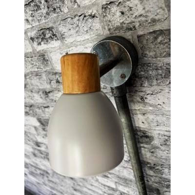 Industrial coastal GU10 conduit spotlight fully adjustable Ideal as a reading light. Takes 1 x GU10 LED lamp. Gorgeous metal cowl shaped shade complimented with a Scandi wooden back. This is a coastal design coupled with an industrial vibe. Conduit lighting is very urban and works well as a feature.