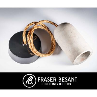 Urban design concrete pendant set. Choose from 1,2,3 or 5 metre cable length. Please choose your desired pendant length from the drop menu. This set comes with a twisted Copper 3 core cable and a satin black round ceiling rose. This all comes assembled and ready to fit. Longer lengths can be made to order please email or call us to discuss. We can also supply and wire a multi outlet ceiling rose with up to 7 outlets. All you need to do is choose a stylish lamp to set this feature light off. We recommend the use of our LED 120mm globe or the tubular LED filament squirrel cage lamp. These pendants are ideal for industrial interior designs. We have them on display now in our Bristol showroom. They are beautifully made and very good quality.